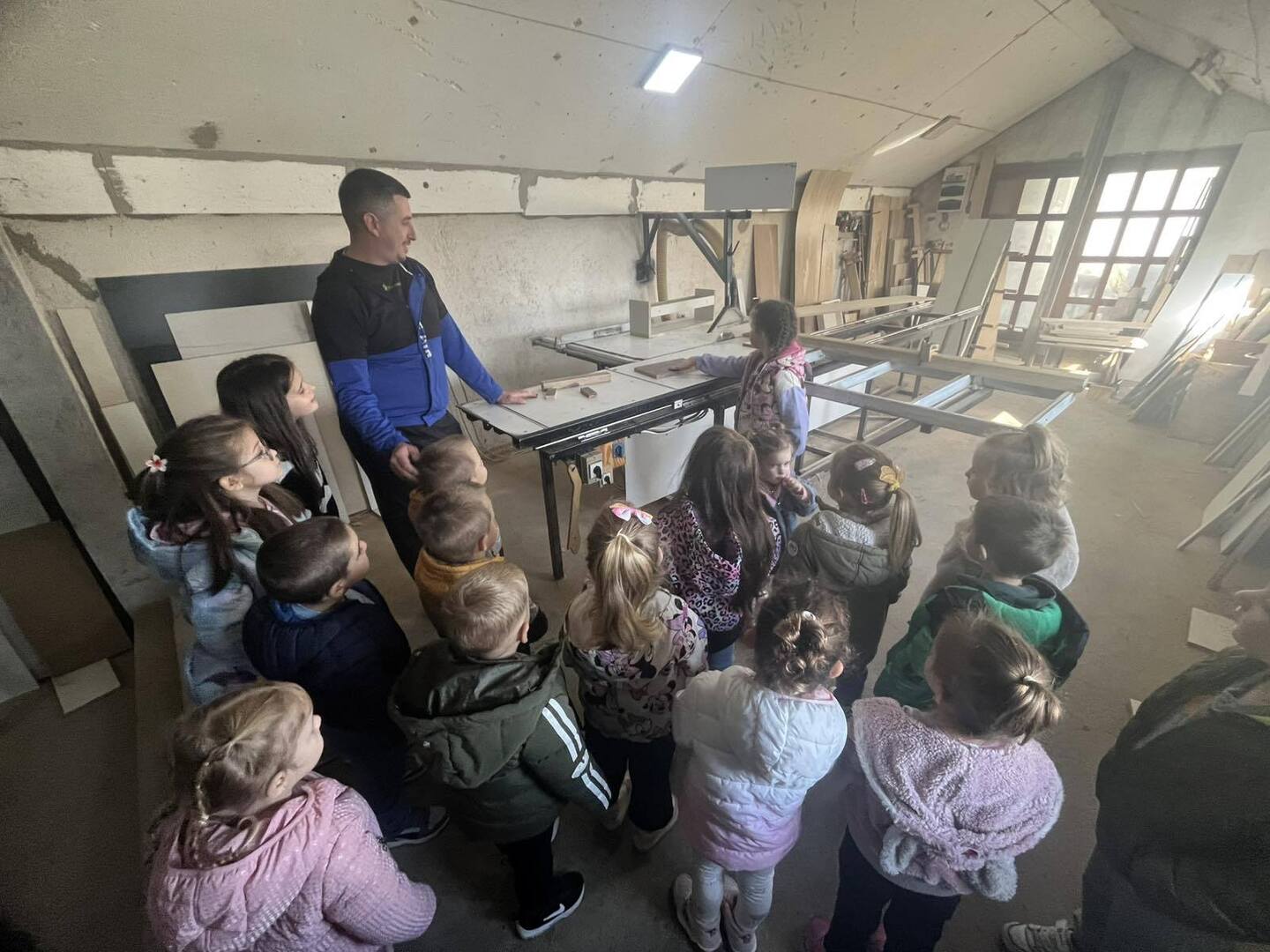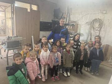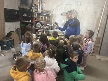 Деца из васпитне групе „Сунце“ у Азбресници данас су имала прилику да виде како настају производи од дрвета, почев од обраде дрвета до употребе разних алата и машина.